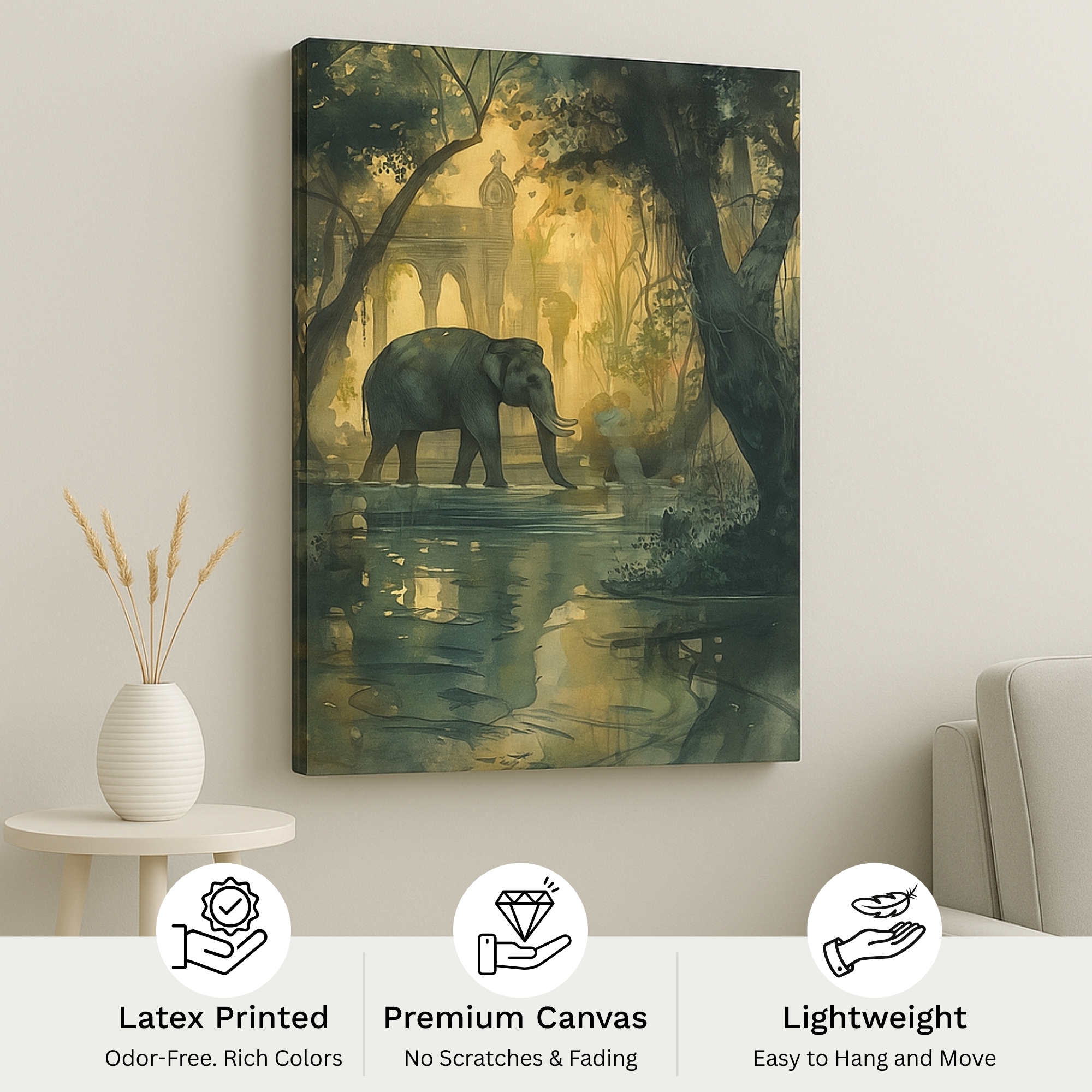 Pair with warm lamps, woven textures, and neutral walls for tranquil depth. This wildlife canvas print also makes an inspired gift for nature lovers and heritage enthusiasts. Printed on premium stretched canvas using fade-resistant inks, it ensures lasting tonal richness. Proudly made in India, this canvas wall art merges wilderness poetry with cultural memory.