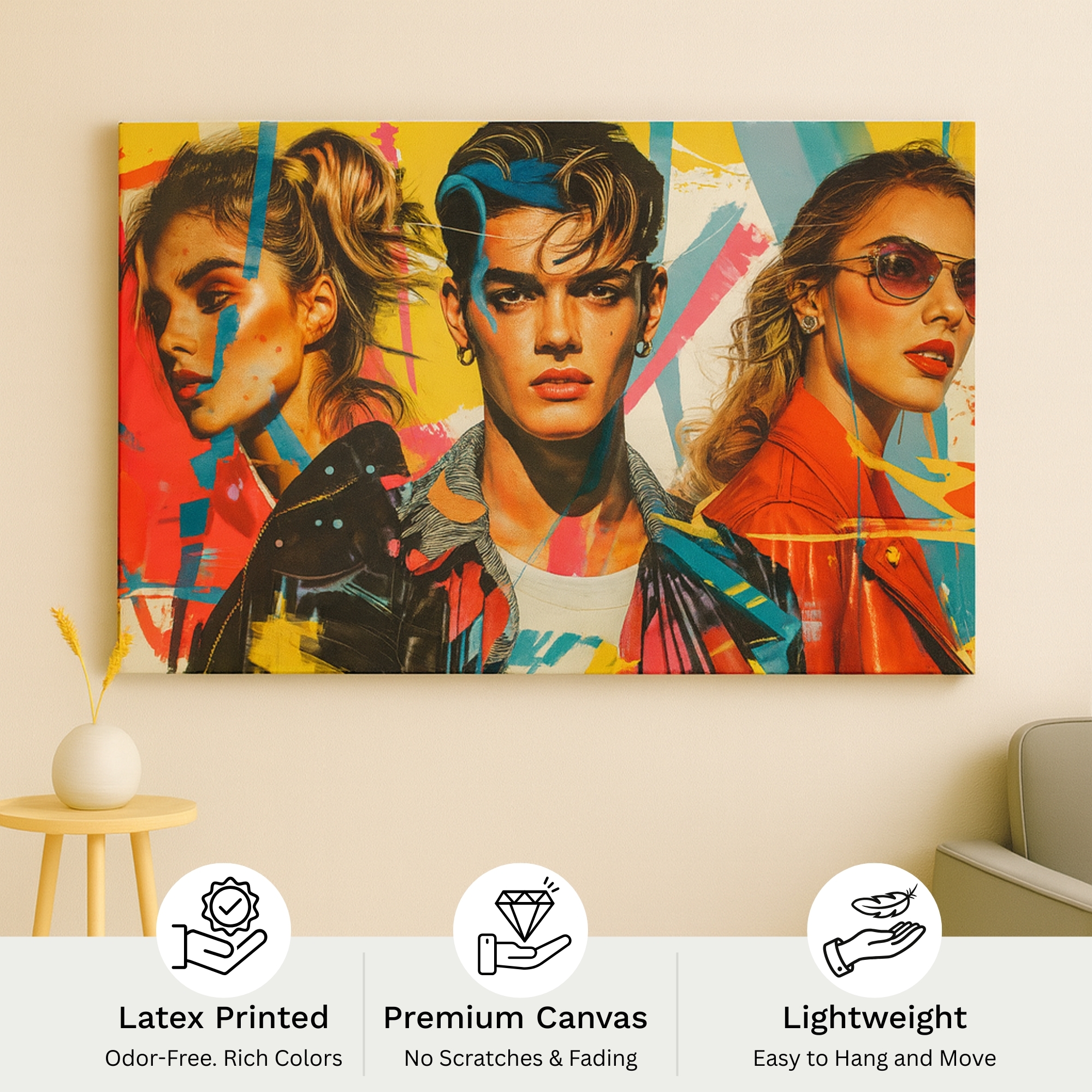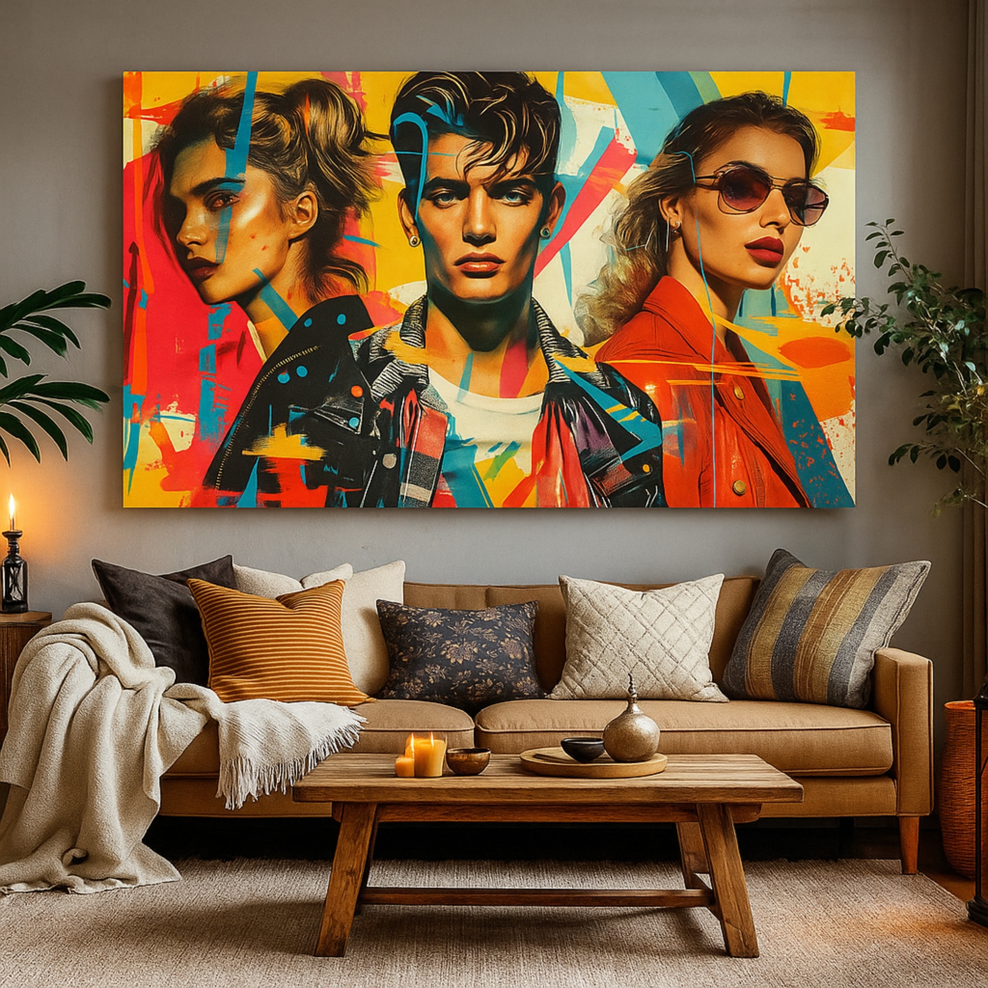 “Urban Icons Canvas Print blends contemporary culture, modern line-art details, and vibrant street-inspired aesthetics. Designed for creative studios, trendy apartments, and modern décor themes, this artwork highlights personality and artistic confidence. Its expressive layout and bold coloring make it a standout feature for stylish interiors.